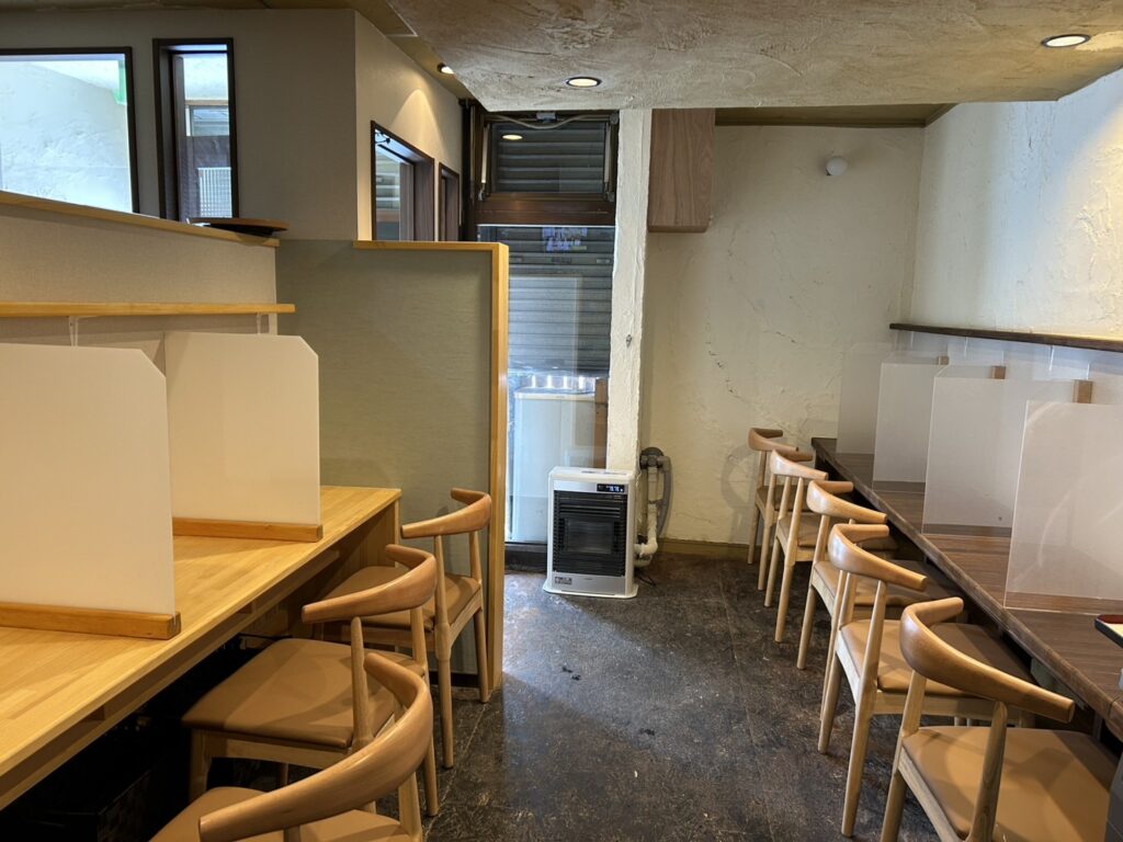 今回のコンセプトは、お子様連れの小上がり待ちを減らしたい、そして、冬の寒さがドアを開けた途端に一気に寒くなる店内の作りを変えたい、そんな思いでした。