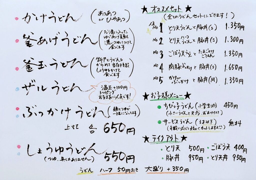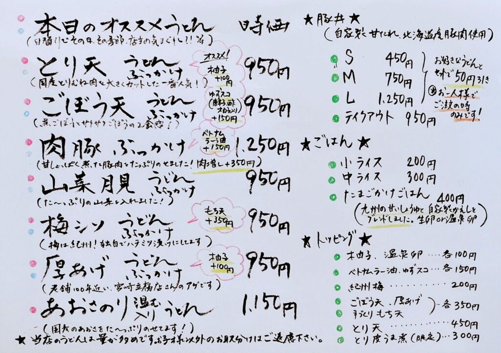メニュー最終更新日(2026.1.28)店頭で一部変更になっている場合がございます。最新情報はインスタグラムでもお知らせします。
